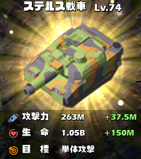 ![]() | Lv74(ステルス戦車) | 263,000,000(263M) | 1,050,000,000(1.05B) |
