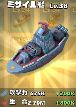 | Lv38(ミサイル艇) | 675,000(675K) | 2,700,000(2.70M) | |